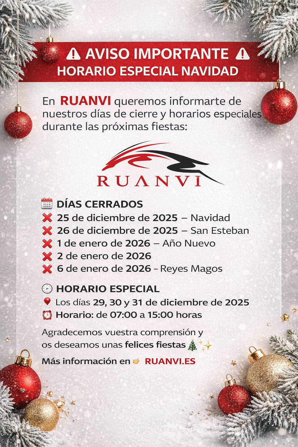En RUANVI queremos informarte de nuestros días de cierre y horarios especiales durante las próximas fiestas: