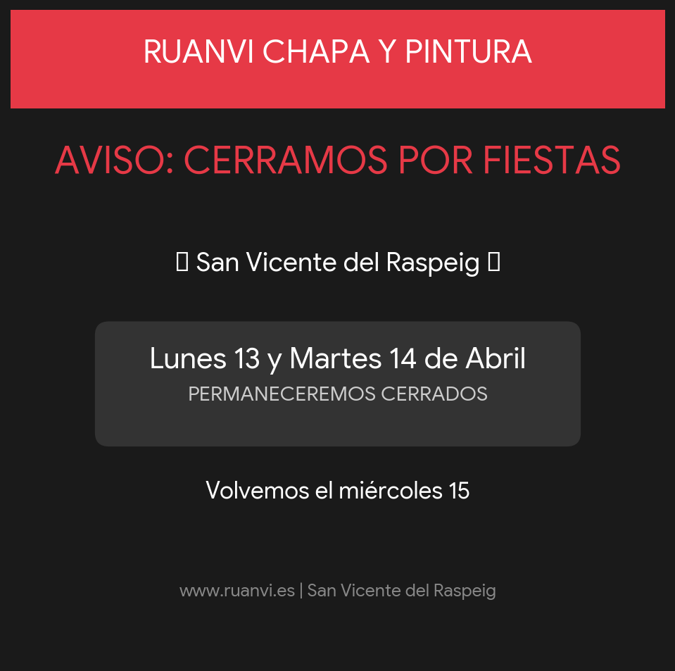 En Ruanvi Chapa y Pintura nos tomamos un pequeño descanso por las fiestas locales. 🥳